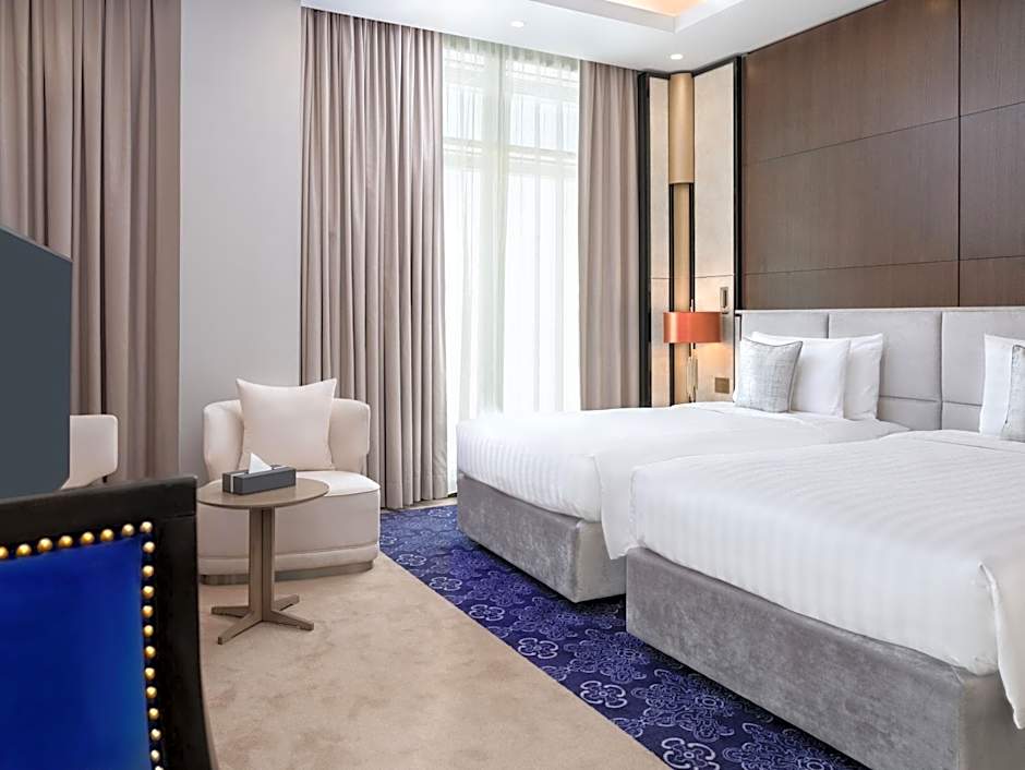 This double room features air conditioning, flat-screen TV and electric kettle. It offers complimentary WiFi, bedroom slippers and Bluetooth station. The bathroom is equipped with toiletries and bathrobes.